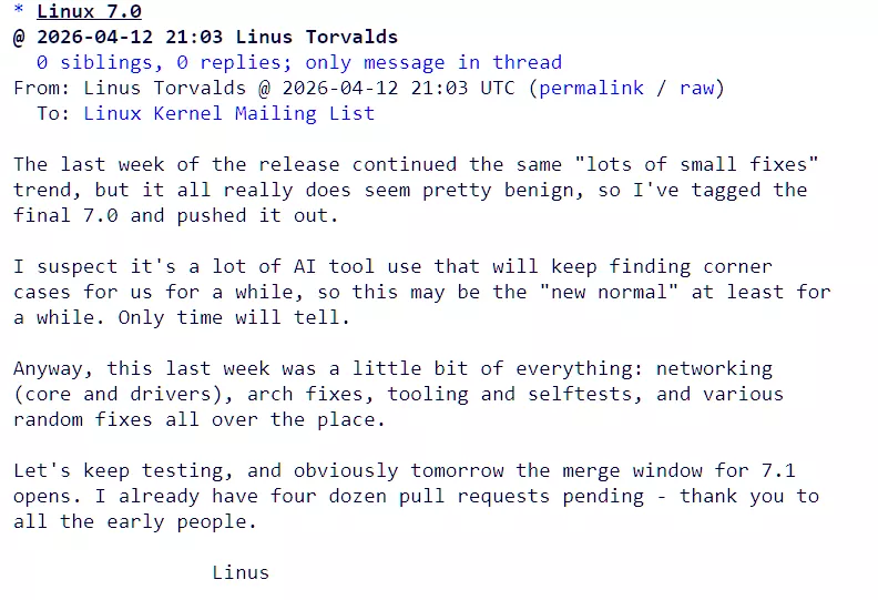Per gli utenti, Linux 7.0 si presenta come una release solida e matura, priva di quell’effetto “wow” a buon mercato.