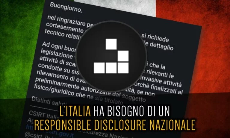 Red Hot Cyber consiglia ai nostri politici di mettere mano alla normativa e pensare qualcosa che possa risultare efficace e allo stesso tempo sostenibile incentivando chi vuole fare del bene alla nostra nazione, segnalando vulnerabilità di sicurezza.
