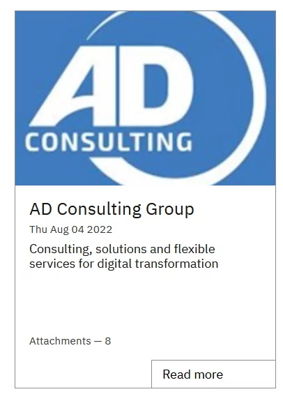 Il gruppo AD Consulting, ha 4 sedi in Italia e oltre 100 dipendenti, è una realtà in grado di offrire servizi di consulenza e soluzioni volti a sostenere e accompagnare le aziende nei loro processi di innovazione e trasformazione digitale. Le aziende del gruppo sono: