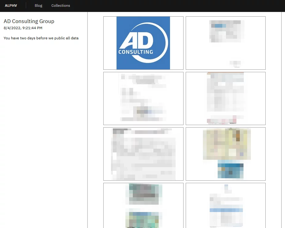 Il gruppo sembra gestire più di un Data Leak Site (DLS), dove ognuno di questi ospita i dati di una o due vittime, con ALPHV (BlackCat) che ne crea uno nuovo da utilizzare in nuovi attacchi. Una teoria è che questi siti di fuga siano attualmente ospitati dagli stessi affiliati ALPHV (BlackCat), il che spiega i diversi URL di fuga dei dati.