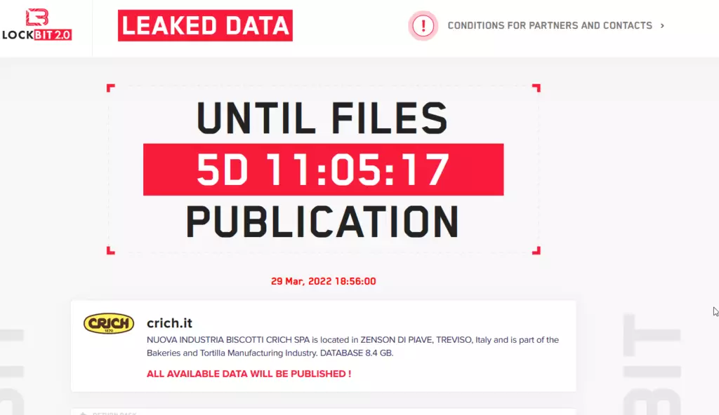 Dopo Confindustria Caserta di questa mattina, il gruppo LockBit pubblica un nuovo avviso. Questa volta ad essere stata violata è l’azienda Crich Spa, produttrice di biscotti di Treviso.