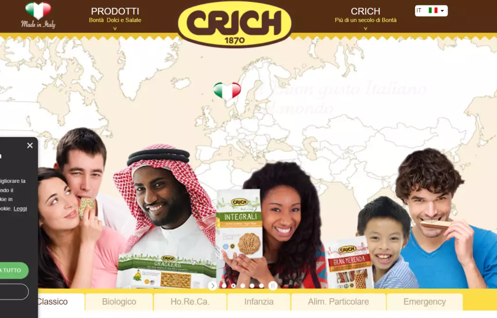 Crich è una solida impresa con una grande tradizione dolciaria, specializzata nella produzione e commercializzazione di un’ampia gamma di prodotti da forno, quali biscotti secchi e frollini, crackers, wafers e salatini.