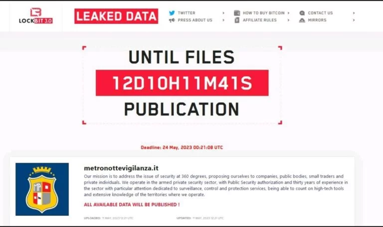 Ricordiamo sempre che la pubblicazione di un avviso sul loro data leak site (DLS), consente a LockBit di aumentare la pressione nei confronti dell’organizzazione e costringerli a pagare il riscatto, pena la pubblicazione delle informazioni sottratte dalle loro infrastrutture IT.