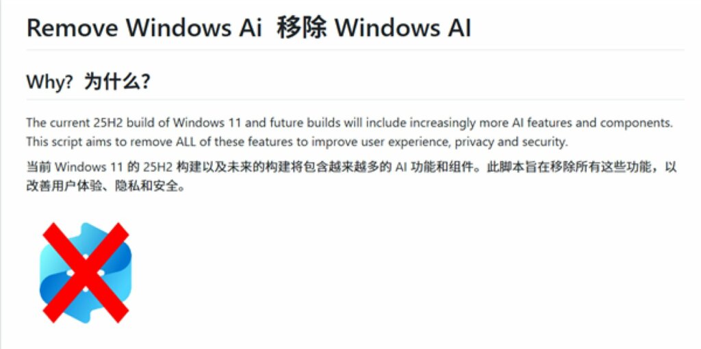 Oltre allo script vero e proprio, il repository GitHub del progetto mette a disposizione una serie di istruzioni per disattivare manualmente ulteriori funzioni basate sull’AI.