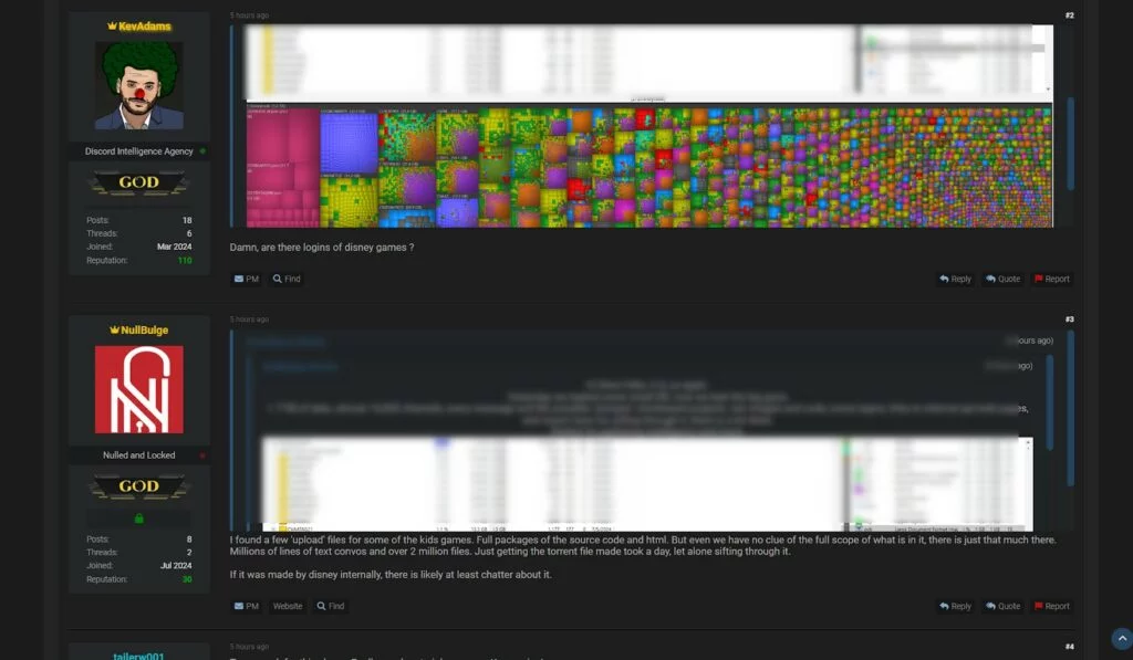 L’hacker, identificato con il nome di NullBulge, ha pubblicato un post dettagliato nel quale descrive la natura e la portata del furto di dati. Secondo quanto riportato, sono stati resi pubblici non solo dati sensibili ma anche elementi di grande valore strategico per Disney, come progetti ancora in fase di sviluppo e codice sorgente utilizzato per applicazioni e piattaforme interne.