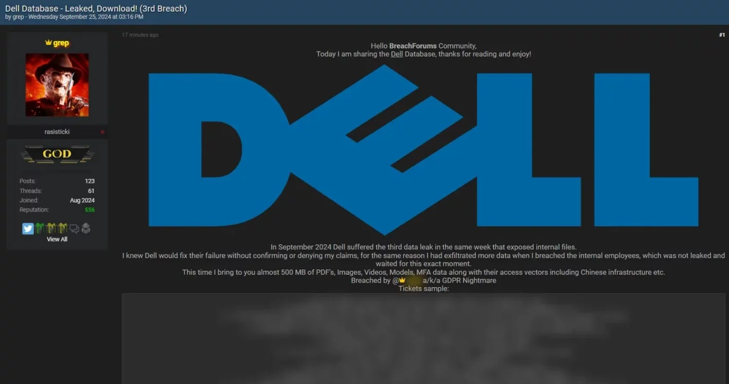 Come dice il proverbio Non c’è due senza tre. Sembrerebbe infatti che DELL sia stata colpita nuovamente con un’altra fuga di dati, segnando così il terzo incidente in una sola settimana. Il Threat Actor “grep”, ha rivendicato poche ore fa la responsabilità dell’ultima violazione facendo intuire di aver preso di mira il colosso della tecnologia.