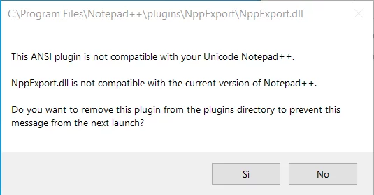 Nonostante questo errore Notepad++ prosegue la sua normale esecuzione.