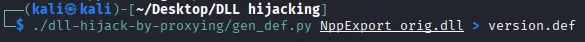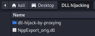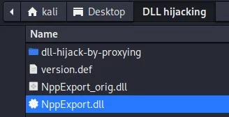 Preleviamo la DDL da eseguire Hijacking, in questo caso NPPExport.dll che è stata rinominata.