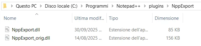 NppExport.dll esegiurà il proxy di tutte le chiamate alle funzioni esportate nel file legittimo NppExport_orig.dll evitando che applicazioni segnali malfunzionamenti.