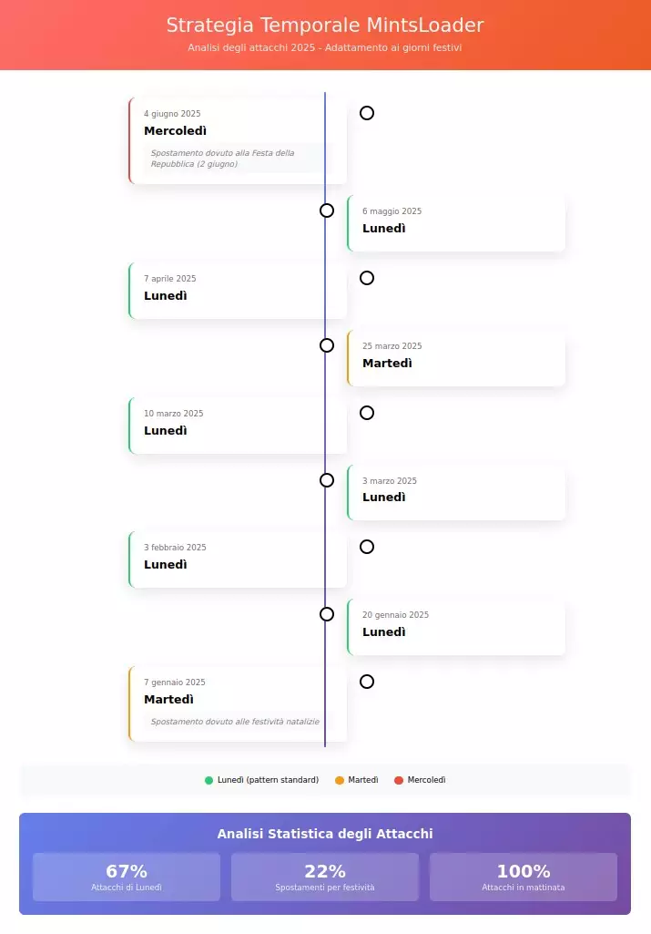 È inoltre interessante evidenziare come venga mantenuta la stessa strategia temporale già descritta nel precedente avviso del CERT-AGID, con un ritorno delle attività in coincidenza con la ripresa lavorativa post-estiva.
