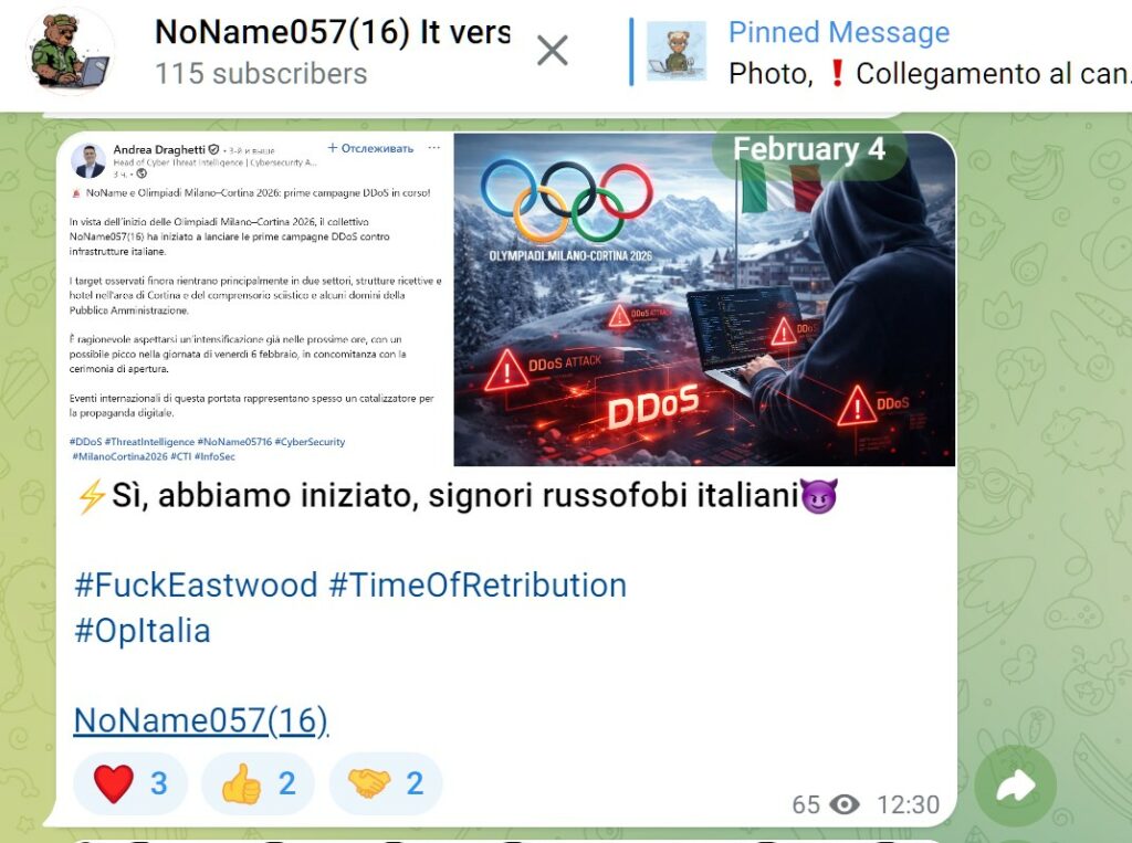 Il ritorno degli attacchi contro l’Italia appare quindi strettamente legato al contesto olimpico, in particolare alla visibilità internazionale dei Giochi e al ruolo strategico di alcune infrastrutture e organizzazioni coinvolte. Un segnale che conferma come eventi sportivi globali continuino a rappresentare obiettivi ad alto valore simbolico nel panorama della guerra cibernetica e dell’hacktivismo politico.