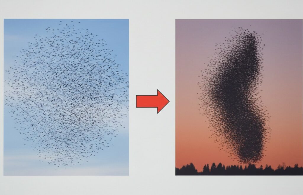Buscema proietta un’immagine. Stormi di uccelli. “Vedete gli uccelli? Sono distribuiti in maniera completamente casuale quando si alzano. Un attimo dopo che si sono alzati, cominciano a disegnare geometrie incredibili”. Geometrie ipnotiche, impossibili da prevedere osservando il singolo volatile. “Nessun uccello ha in testa, o nel suo cervello, il modo con cui si organizzano insieme”, spiega. È un fenomeno che i matematici chiamano “emersione spontanea dal basso della complessità”. Lo stesso, identico principio per cui gli atomi che diventano molecole, molecole che si fanno amminoacidi, amminoacidi che si trasformano in proteine. Ogni passaggio è un salto evolutivo. Ogni livello è qualcosa di più, qualcosa di radicalmente diverso, rispetto alla somma delle sue parti.
