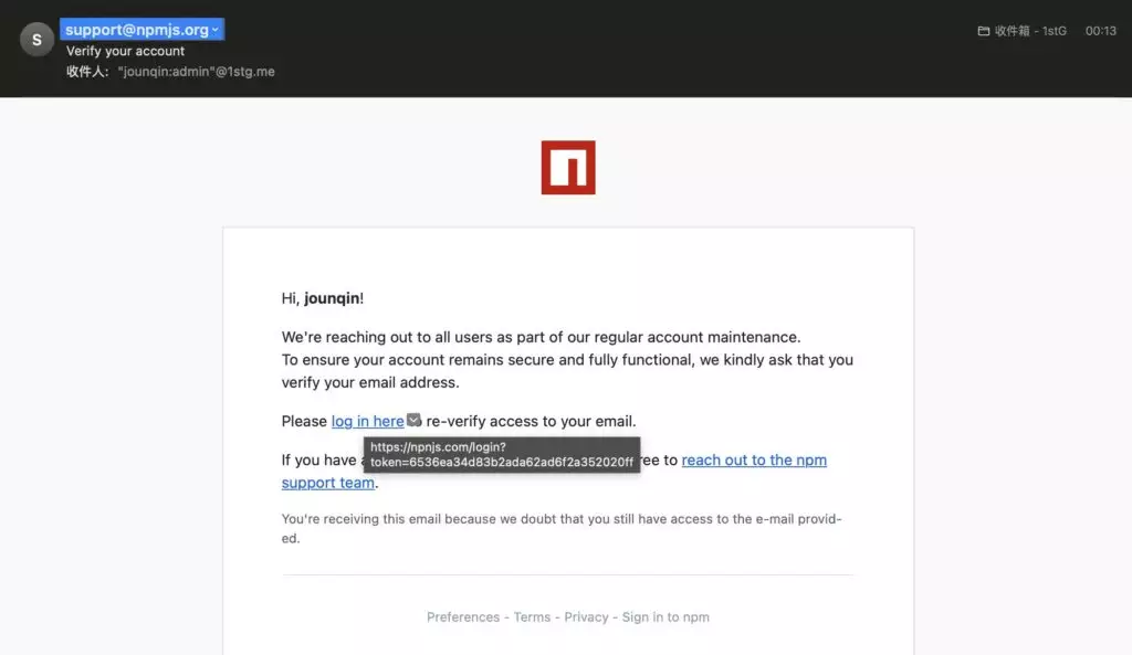 “Un manutentore ha confermato che il suo token npm era stato compromesso tramite un’e-mail di phishing che si spacciava per npnjs[.]com. Gli aggressori hanno utilizzato le credenziali rubate per pubblicare versioni dannose di più pacchetti senza toccare i repository GitHub, rendendo l’attacco difficile da rilevare”, hanno affermato gli analisti di Socket.