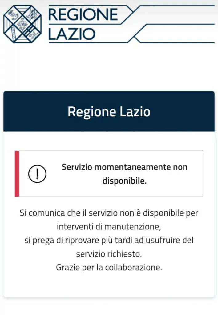La Regione Lazio ha pubblicato poco fa una pagina che riporta che al momento il sito non risulta raggiungibile in quanto in manutenzione