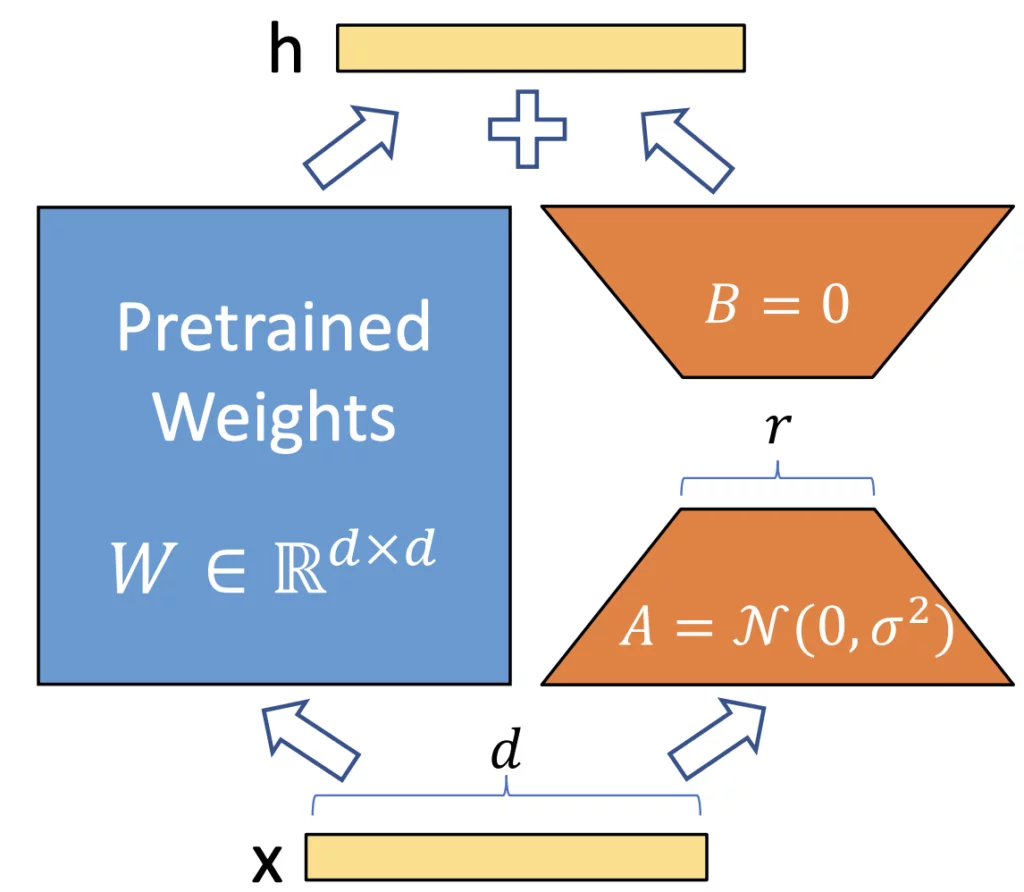 Il metodo proposto nel paper “Low Rank Adaptation Of Large Language Models”, o LoRA, consiste nel sostituire le matrici del modello originale con coppie di matrici più piccole (utilizzando la decomposizione matriciale). In questo modo, solo queste nuove matrici devono essere ri-addestrate per adattare il modello a piu downstream tasks.