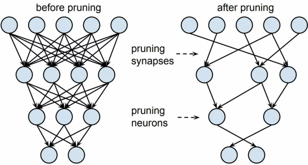 Il pruning è nato per risolvere il problema dell’overfitting negli alberi decisionali (decision trees), infatti i rami venivano tagliati per diminuire la profondità dell’albero. Il concetto è stato successivamente utilizzato nelle reti neurali, in cui vengono rimossi gli archi e/o nodi della rete (a seconda che si esegua un pruning non-strutturato o strutturato).