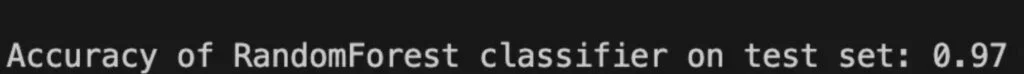 print(f"Accuracy of RandomForest classifier on test set: {accuracy:.2f}")