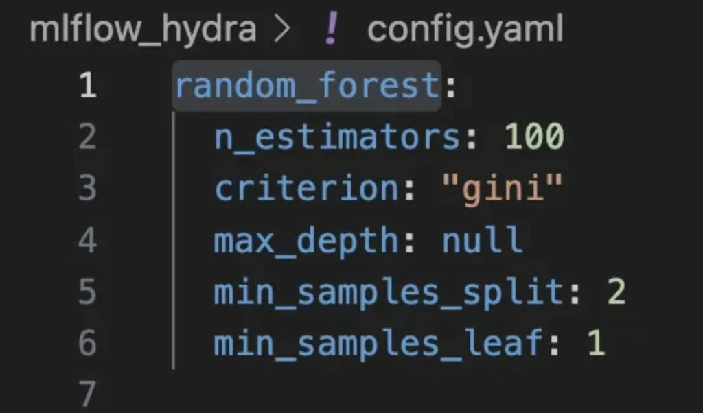 Perché allora creare un secondo yaml invece di passargli direttamente il config.yaml? Semplicemente perché in config.yaml potrei avere impostazioni anche per altre cose oltre che al random forest. In questo caso, non ce ne sono perché si tratta di un esempio giocattolo, quindi potremmo anche saltare questo passaggio.