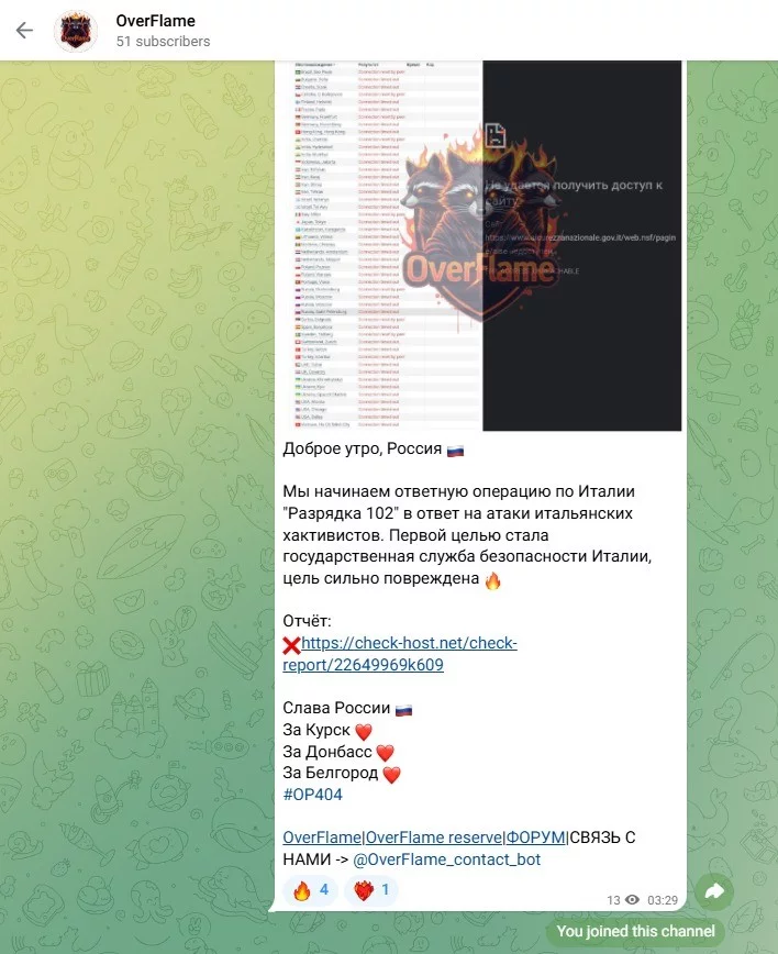 Stiamo lanciando una contro-operazione sull'Italia “Defuse 102” in risposta agli attacchi degli hacktivisti italiani. Il primo obiettivo è stato il servizio di sicurezza statale italiano, l'obiettivo è gravemente danneggiato 🔥
