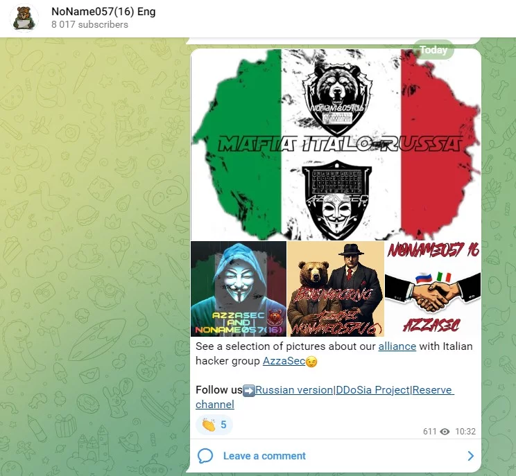 In un recente sviluppo, AzzaSec ha stretto una serie di alleanze, anche con il gruppo di hacktivisti filorussi NoName, noto per le sue incursioni cibernetiche in Italia con attività mirate a destabilizzare il paese e promuovere i loro interessi geopolitici. Questa nuova affiliazione rappresenta un potenziale aumento della portata e dell’efficacia delle azioni di AzzaSec, ampliando le loro capacità operative e strategiche.