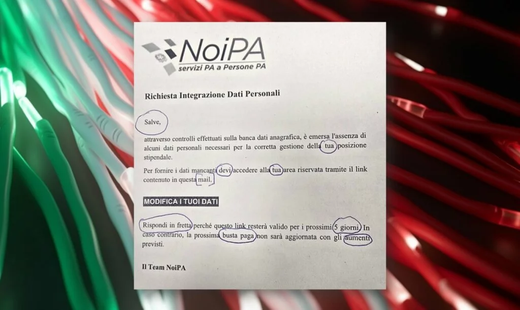 Negli ultimi mesi, complice il tema degli aumenti e degli arretrati NoiPA, è tornata a circolare questa campagna di phishing che ripropone modelli noti, con variazioni minime nel lessico e nei riferimenti temporali. Non introduce tecniche innovative né soluzioni sofisticate: sfrutta un’aspettativa reale, quella di ricevere una comunicazione ufficiale legata a eventi economici concreti e ampiamente discussi.