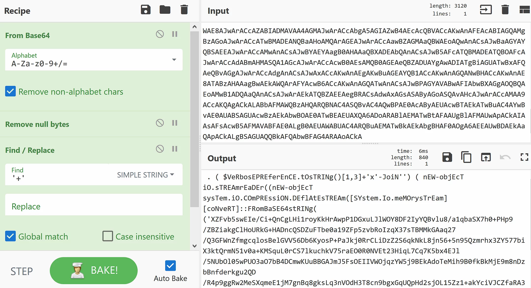 Fino a questo punto potresti considerare CyberChef come un convertitore di formato dati potenziato, tuttavia, CyberChef fa un ulteriore passo avanti nel consentirti di combinare le operazioni in cui l’output dell’operazione precedente funge da input per quella successiva.
