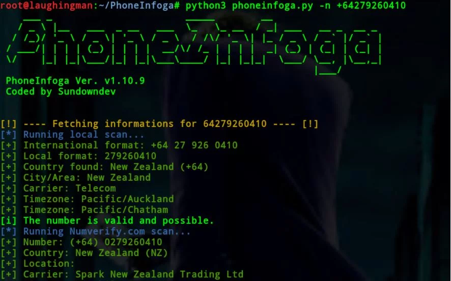 PhoneInfoga è uno degli strumenti più avanzati per scansionare i numeri di telefono internazionali utilizzando solo risorse gratuite. L’obiettivo, è innanzitutto raccogliere informazioni come paese, area, operatore telefonico e tipo di linea su qualsiasi numero di telefono internazionale, con una precisione molto buona.