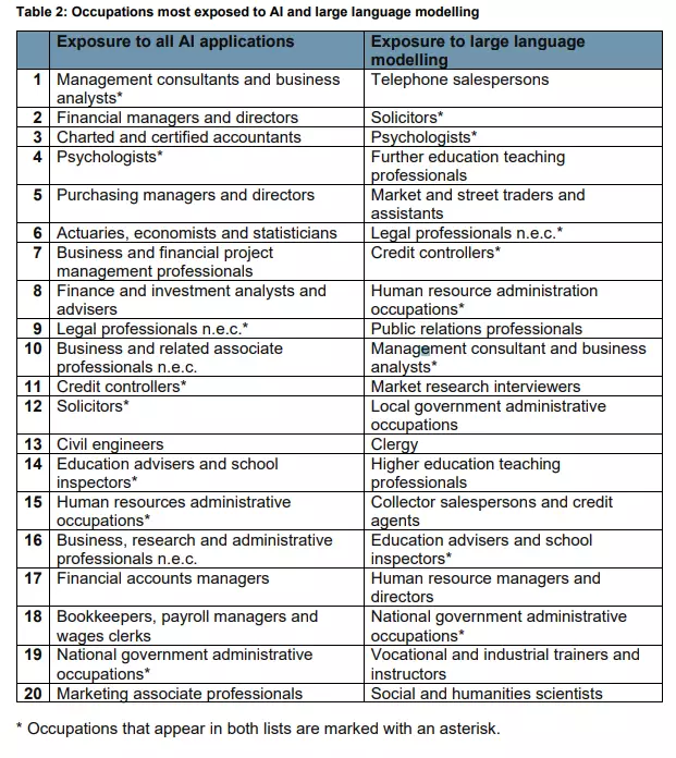 L’intelligenza artificiale (AI) sta sollevando preoccupazioni circa la potenziale automazione dei posti di lavoro. Una ricerca pubblicata di recente dal Dipartimento dell’Istruzione del Regno Unito mostra che il 10-30% dei posti di lavoro potrebbe essere automatizzato dall’intelligenza artificiale. A rischio sono in particolare i posti di venditori telefonici, avvocati, psicologi, insegnanti e operatori del mercato.