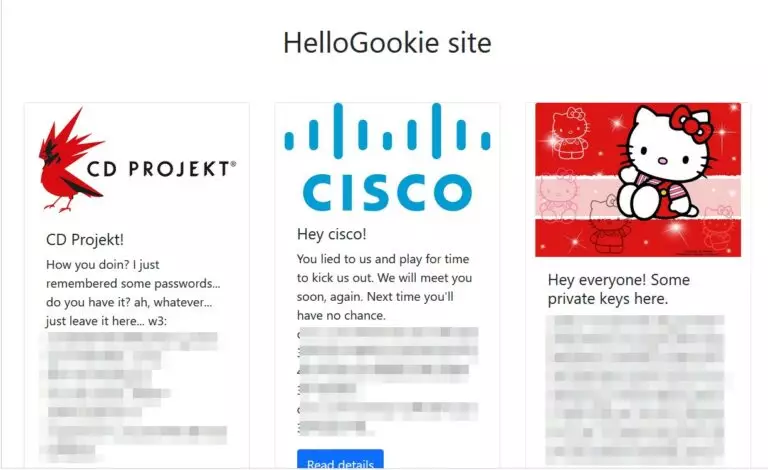 Gli autori del ransomware HelloKitty hanno annunciato il cambio di nome in HelloGookie e hanno pubblicato le password di CD Projekt Red e i dati Cisco precedentemente pubblicati online, nonché le chiavi di decrittazione per vecchi attacchi.