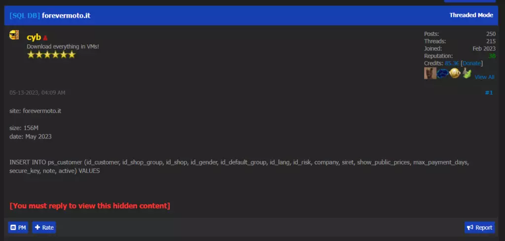 All’interno di un famoso forum underground è apparso recentemente un post da parte di un criminale informatico che rivendica un attacco informatico alla Forevermoto nel quale sostiene di essere in possesso dei suoi dati.