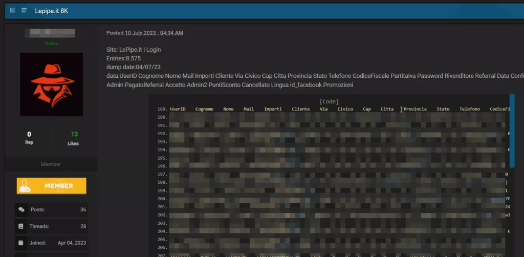 E’ stato pubblicato recentemente, all’interno del famigerato forum di criminali informatici Nulled, un post che riporta una nuova rivendita di dati relativa all’azienda italiana LePipe.