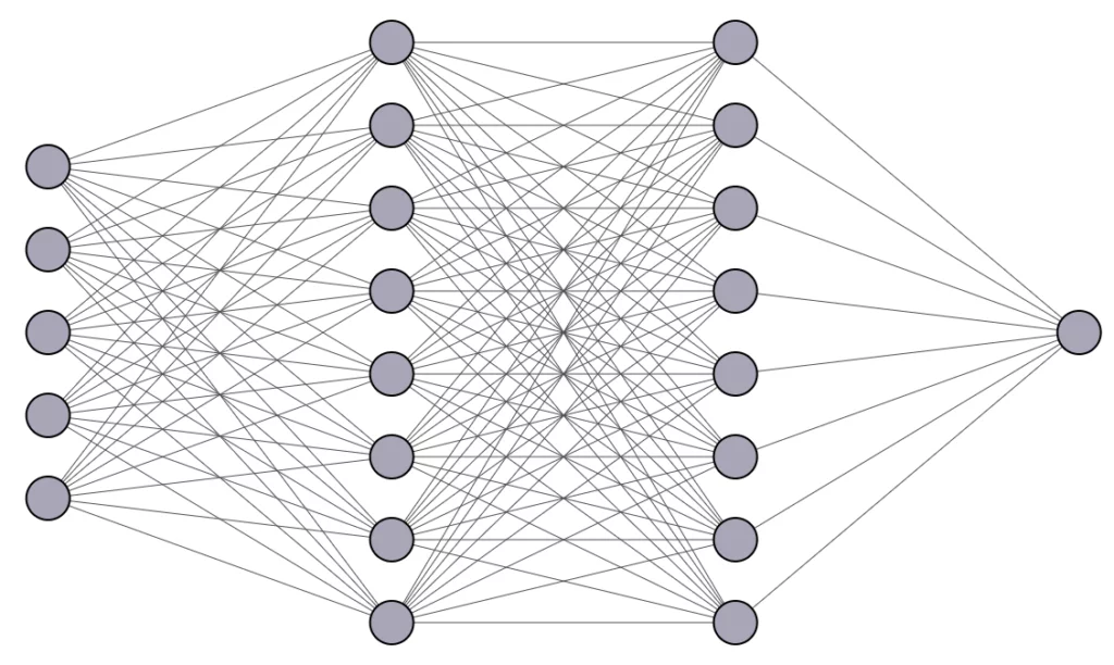 Quindi possiamo creare un algoritmo più complesso strutturando tanti percettroni (o neuroni) in layer in cui l’output dei neuroni nei layer precedenti saranno l’input per i layer successivi.