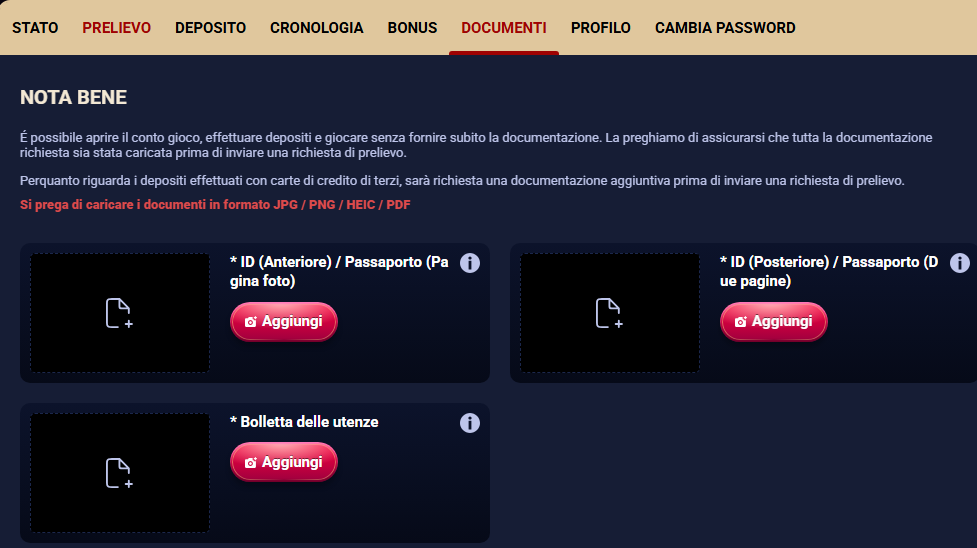 | “Fast Payouts” | Verifica solo in fase di prelievo |