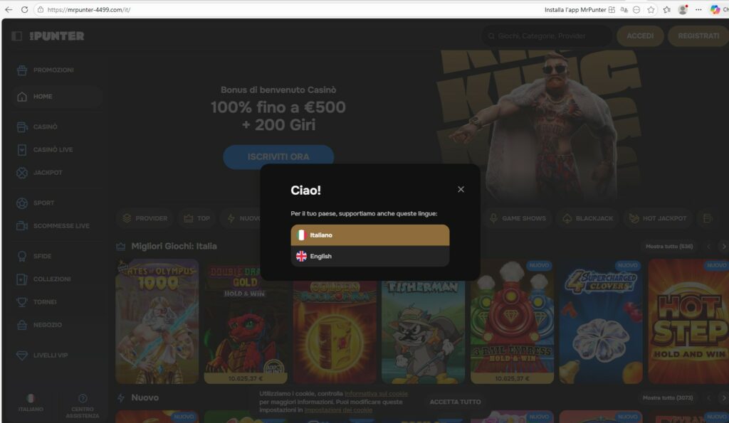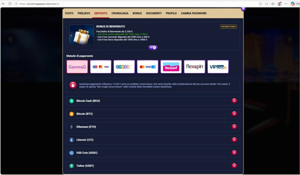 La destinazione non è una pagina improvvisata. È un ambiente completo di gambling: registrazione, bonus di benvenuto, catalogo giochi, slot, roulette, live casino, percorsi di deposito con metodi multipli incluse criptovalute.