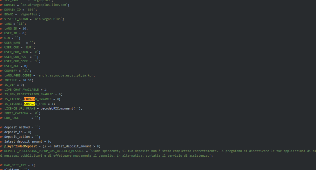 | “Fully Licensed and Regulated Gaming Environment” | IS_LICENSE_CURACAO_FAKE = 1 |