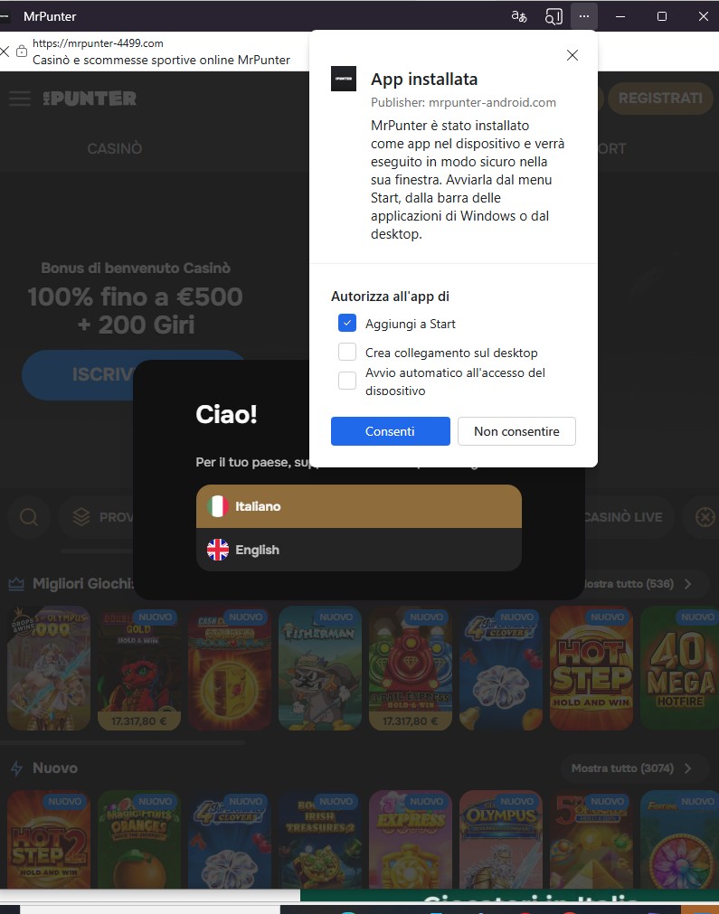 Il sistema sfrutta funzionalità legittime del browser per simulare un’installazione credibile. L’utente può visualizzare finestre di installazione, opzioni di avvio e comportamenti tipici di un’applicazione, ma si tratta in realtà di un semplice wrapper del sito web eseguito in ambiente controllato.