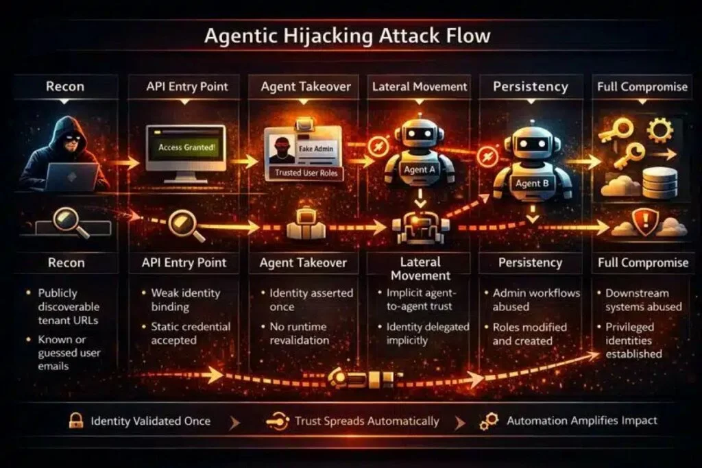 Il cuore del problema risiede nel modo in cui l’identità viene gestita tra i diversi componenti della piattaforma. In ServiceNow, una volta che un’identità veniva validata inizialmente, la fiducia si propagava indefinitamente attraverso gli agenti e i flussi di lavoro senza ulteriori controlli. Gli aggressori hanno sfruttato questa lacuna per “telecomandare” l’intelligenza artificiale dell’organizzazione.