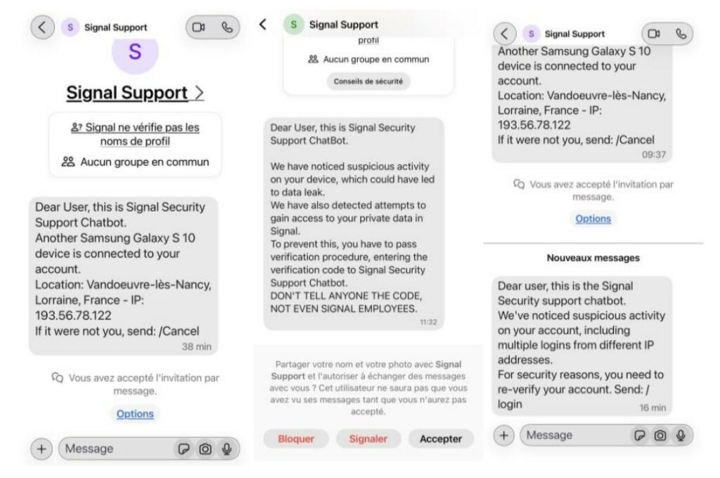 L’attacco descritto dal CERT-FR si basa principalmente su tecniche di ingegneria sociale che sfruttano la fiducia dell’utente e la diffusione di app come Signal. Gli aggressori contattano la vittima fingendosi un servizio legittimo, un collega o un contatto affidabile, inducendola a condividere codici di verifica o a cliccare su link malevoli. In alcuni casi, l’attacco può passare anche attraverso pagine di autenticazione contraffatte o richieste apparentemente urgenti che spingono l’utente ad agire senza verificare l’origine della comunicazione.