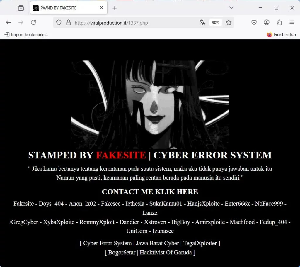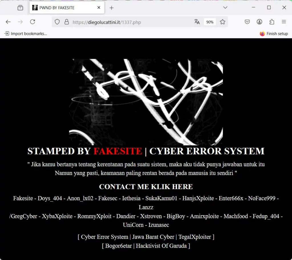 Nel caso del gruppo !FAKESITE il messaggio lasciato sui siti attaccati suggerisce un intento più legato al cyber-vandalismo o alla dimostrazione di competenze, piuttosto che a una vera e propria causa politica. Tuttavia, la presenza di riferimenti a una “Cyber Error System” e a collettivi come “Hacktivist Of Garuda” potrebbe suggerire un legame con movimenti più ampi della scena underground del hacking.