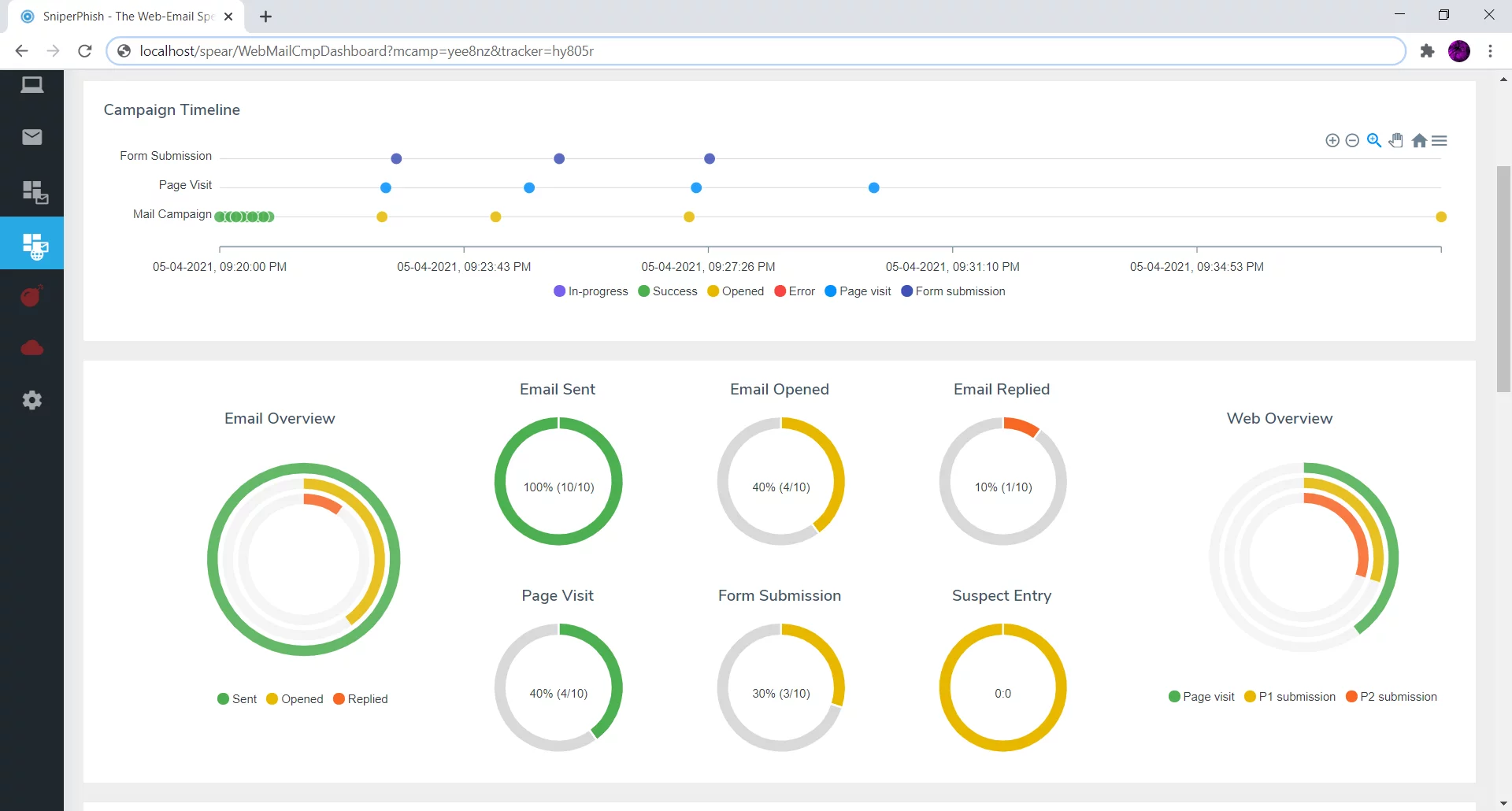 SniperPhish può creare e programmare campagne e-mail di phishing, creare codice tracker web e e-mail, creare immagini tracker personalizzate, combinare siti di phishing con campagne e-mail per il monitoraggio, tenere traccia delle risposte a messaggi di phishing, generare report e altro ancora.