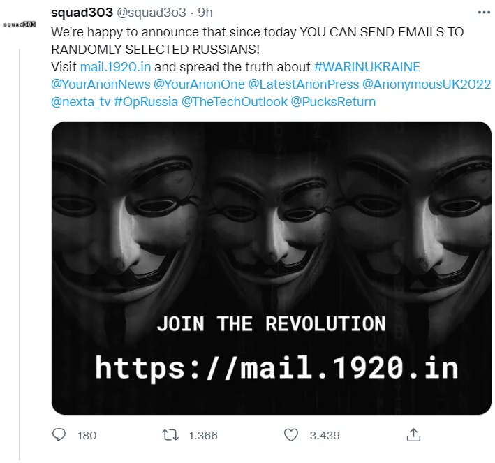ha detto oggi in un video Squad303, che ha creato lo strumento che consente ai guerrieri digitali di superare il muro delle informazioni del regime russo.