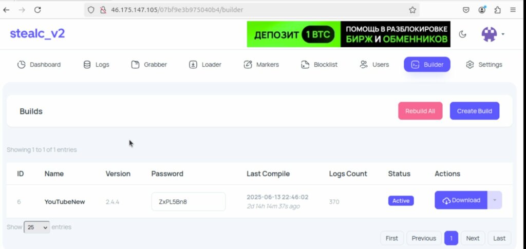 Uno degli autori di minacce identificati è stato soprannominato YouTubeTA, abbreviazione di YouTube Threat Actor. Nei mesi successivi, è stato possibile osservare le campagne malware a lui associate. YouTubeTA ha gestito diverse build di StealC, etichettate come YouTube, YouTube2 e YouTubeNew, suggerendo un collegamento con piattaforme YouTube per la diffusione del malware.