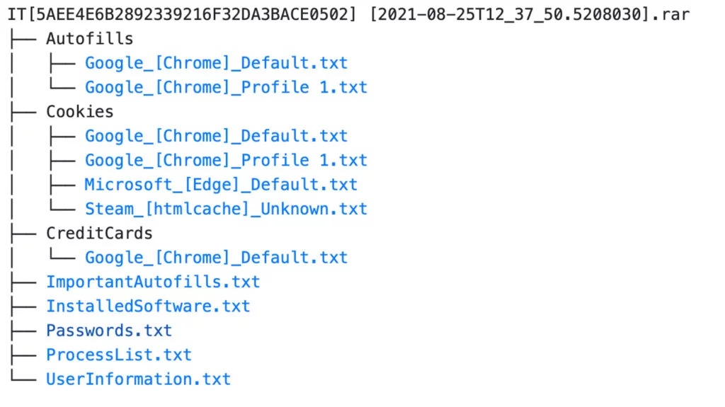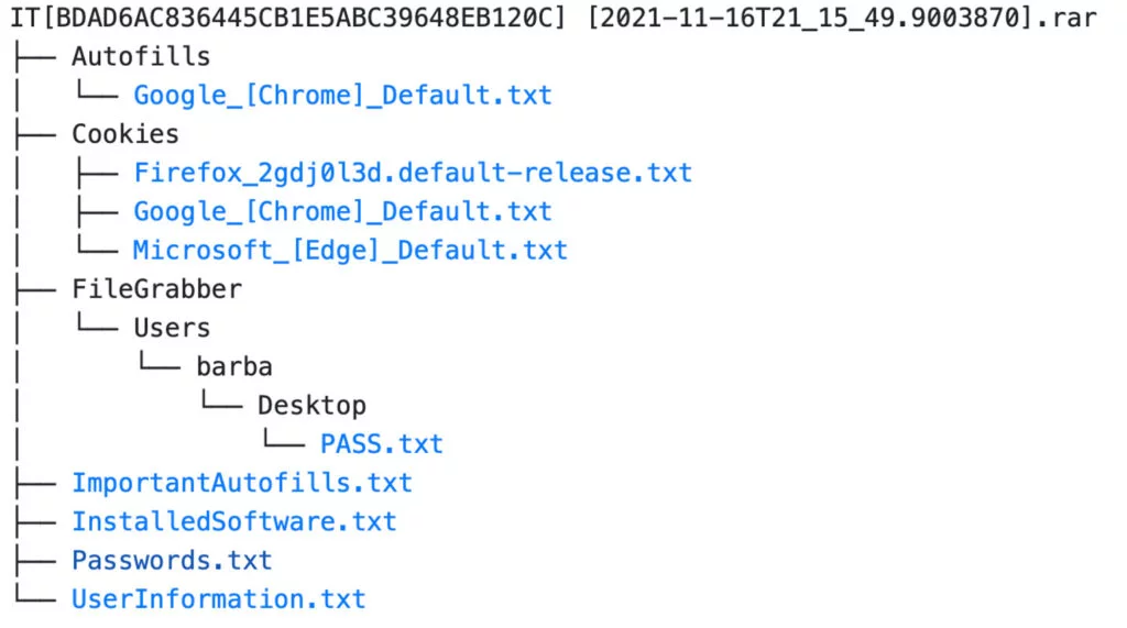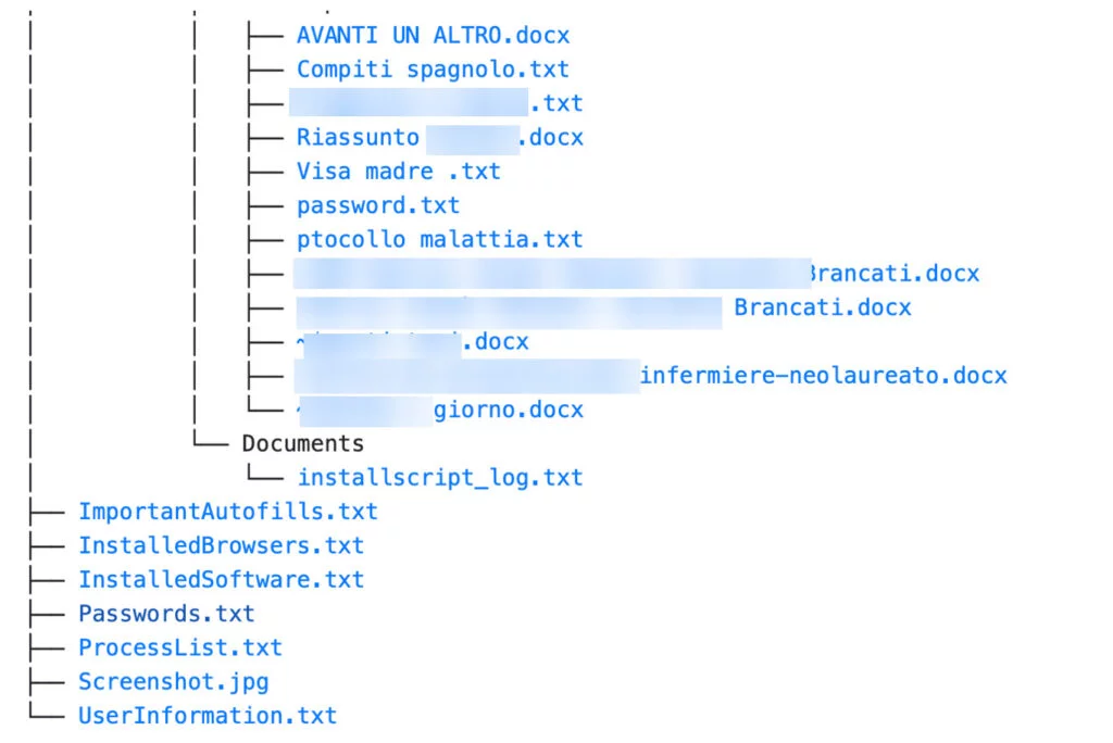 Come avevamo riportato in precedenza, per “BotNet feeds”, si intendono tutti i file contenuti all’interno dei bot che riguardano il dominio corrispondente. Tali dati sono riferiti sia ad utenti interni o esterni. Per Esterni si intendono gli utenti che hanno account su servizi del dominio principale. Ad esempio, nel caso di una regione potrebbe essere un cittadino (non un dipendente) che ha un account, ad esempio, sul sito di prenotazione dei vaccini per il COVID.