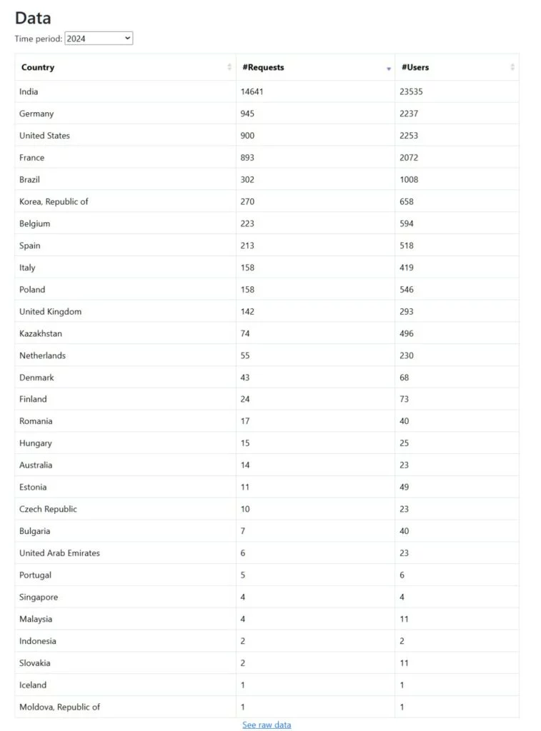Vale la pena notare che le autorità americane non sono le prime in termini di numero di tali richieste. Secondo le statistiche del progetto di crowdfunding, supervisionato dal dipendente di Human Rights Watch Etienne Maynier, l’India è con un ampio margine leader in questo settore: nel 2024 Telegram ha soddisfatto 14.641 richieste provenienti da questo paese e ha comunicato alla legge i dati di 23.535 utenti. agenti delle forze dell’ordine.