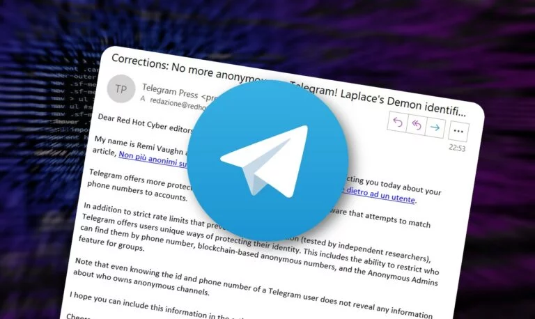 Mi chiamo Remi Vaughn e lavoro per Telegram Messenger. Vi contatto oggi per il vostro articolo, Non più anonimi su Telegram! Il Demone di Laplace identifica chi c'è dietro ad un utente.