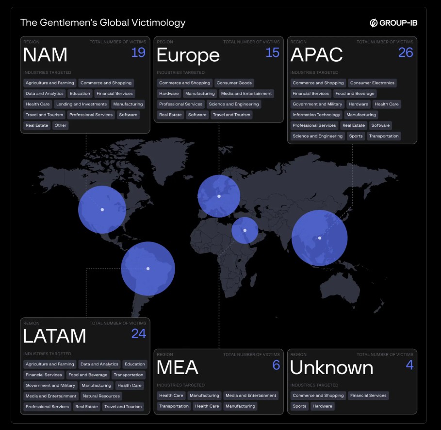 Secondo Group-IB, il gruppo The Gentlemen ha preso di mira ad oggi circa 94 organizzazioni.