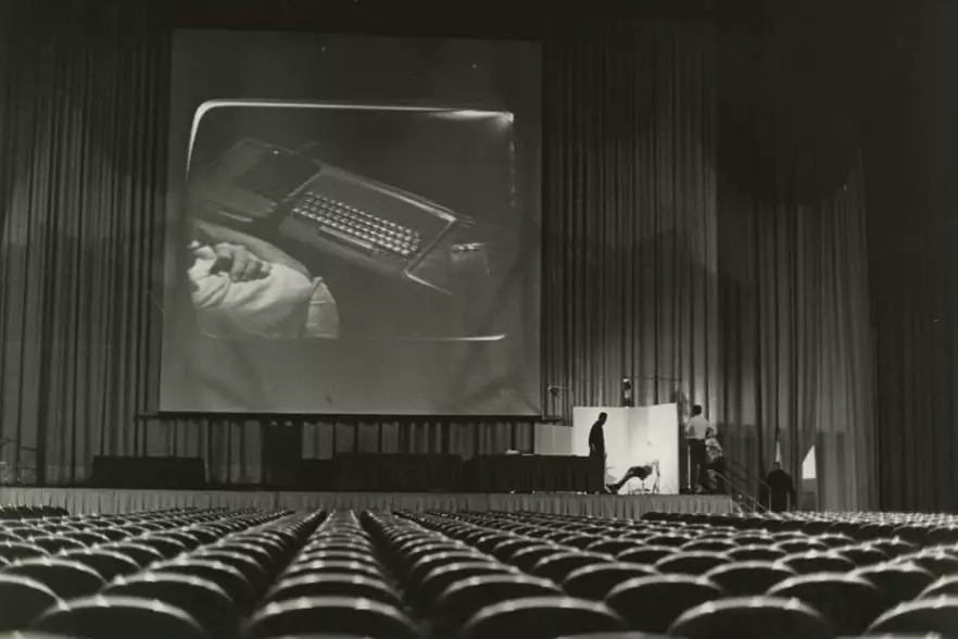 Engelbart era vestito con una semplice camicia bianca e indossava una cuffia con microfono incorporato (per intenderci quelle che oggi vengono usate nei call center) e le sue parole rimbombavano nella grande sala, mentre mostrava i prodigi della tecnica dalla sua postazione studiata dalla Herman Miller Company alla folla stupita.