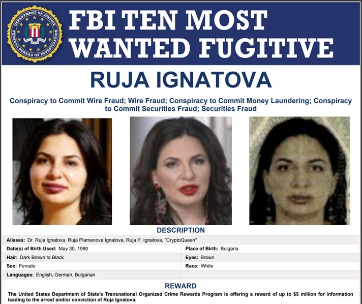 Due settimane dopo essere stata accusata nel 2017, Ignatova è fuggita dalla Bulgaria per raggiungere la Grecia. L’FBI avverte che potrebbe utilizzare un passaporto tedesco per viaggiare tra Emirati Arabi Uniti, Bulgaria, Germania, Grecia e altri paesi dell’Europa orientale.
