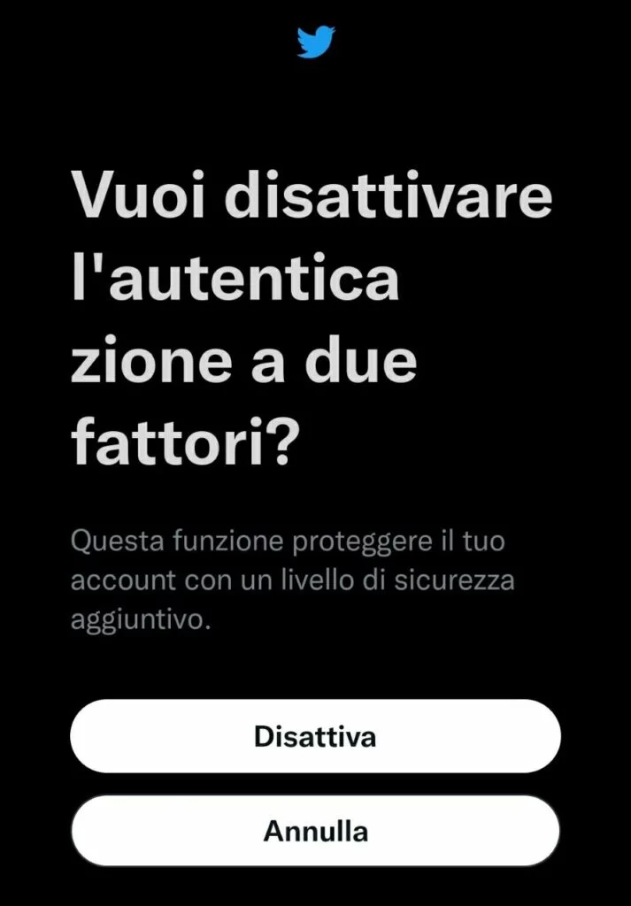 Anzi viene riportato nel messaggio che se non disattiverai la MFA tramite SMS, perderai l’accesso a Twitter fornendo anche una data limite.